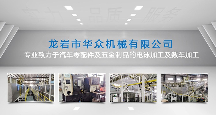 About us龍巖市華眾機械有限公司成立于2010年12月,新廠位于福建省龍巖市新羅區東寶工業集中區,注冊資本3000萬元,占地27000平方米,員工60多人,是一家專業從事電泳、磷化、數車等加工業務的制造型企業,是國家高新技術企業,擁有三十多項實用新型專利。 我司的電泳技術和品質在華南地區深受客戶信賴。公司擁有20年以上經驗豐富的技術人員和管理人員,擁有全自動電泳生產設備,所采用原料均為美國、德國進口,產品品質能達到國際電泳涂裝標準要求,廣泛應用于汽車零部件、機械配件、電子產品、工藝品等一系列金屬制品?,F配套服務于比亞迪、吉利、通用、福特、大眾、豐田、現代等全球知名汽車公司。 2018年8月公司通過NSF-ISR管理評審,獲得IATF16949質量管理體系證書。